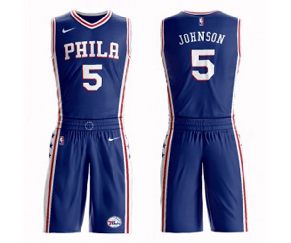 Philadelphia 76ers #5 Amir Johnson Swingman Blue Basketball Suit Jersey - Icon Edition