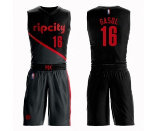 - Portland Trail Blazers #16 Pau Gasol Swingman Black Basketball Suit Jersey - City Edition