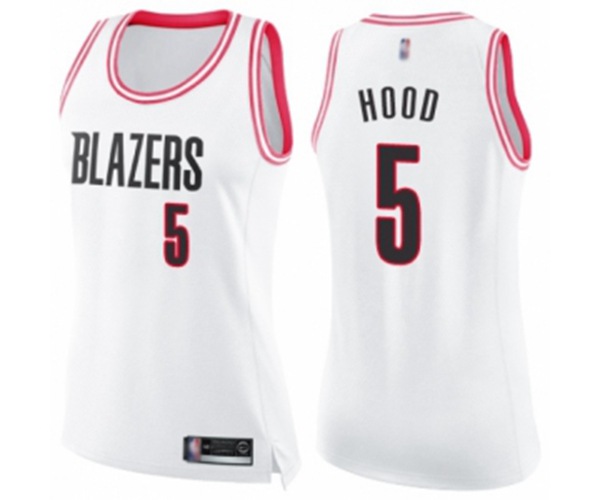 - Womens Portland Trail Blazers #5 Rodney Hood Swingman White Pink Fashion Basketball Jersey