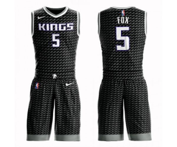 Sacramento Kings #5 DeAaron Fox Swingman Black Basketball Suit Jersey Statement Edition