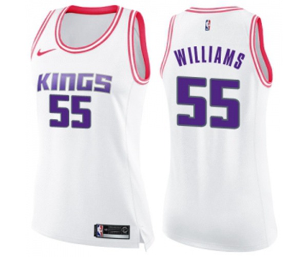 Womens Sacramento Kings #55 Jason Williams Swingman White Pink Fashion Basketball Jersey