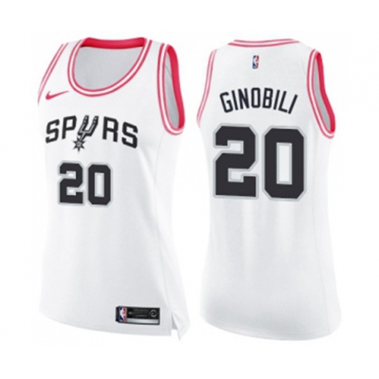 - Womens San Antonio Spurs #20 Manu Ginobili Swingman White Pink Fashion Basketball Jersey