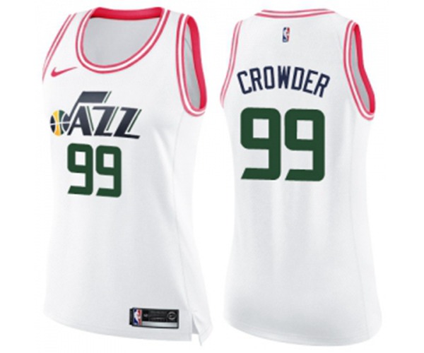 Womens Utah Jazz #99 Jae Crowder Swingman White Pink Fashion Basketball Jersey