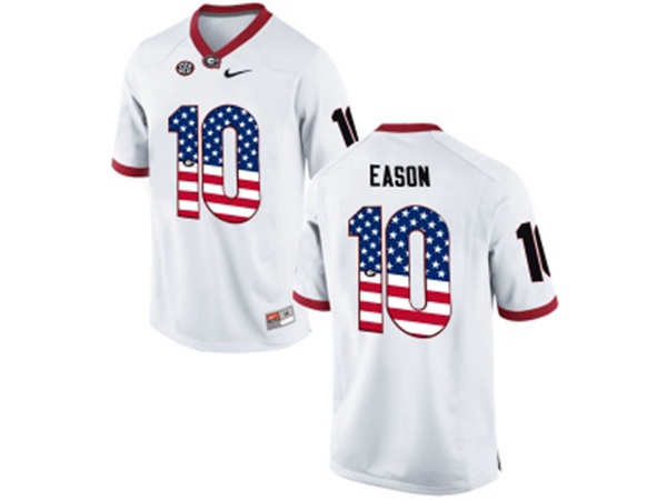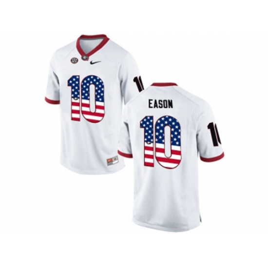 2016 US Flag Fashion-Mens Georgia Bulldogs Jacob Eason #10 College Football Limited Jerseys - White
