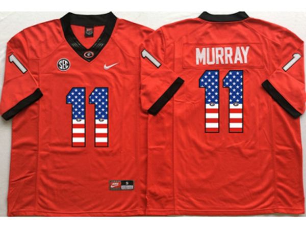 Georgia Bulldogs #11 Aaron Murray Red USA Flag College Jersey