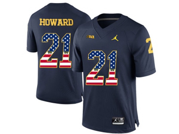 2016 US Flag Fashion-2016 Mens Jordan Brand Michigan Wolverines Desmond Howard #21 College Football Limited Jersey - Navy Blue