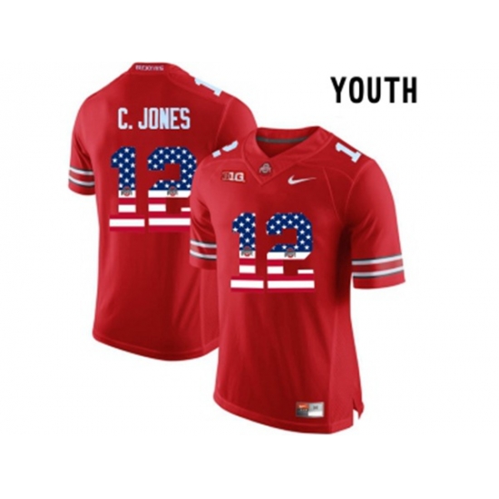 2016 US Flag Fashion Youth Ohio State Buckeyes C.Jones #12 College Football Limited Jersey - Scarlet