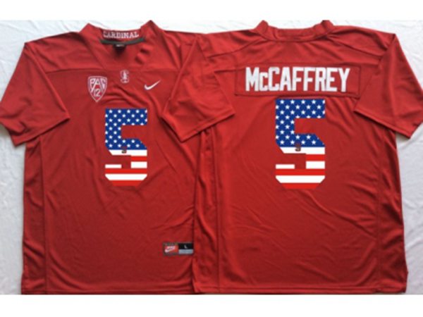 Stanford Cardinals #5 Christian McCaffrey Red USA Flag College Jersey