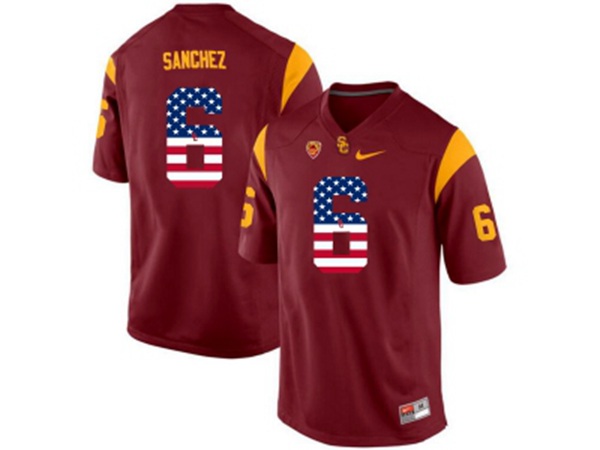 - 2016 US Flag Fashion USC Trojans Mark Sanchez #6 College Football Jersey - Red