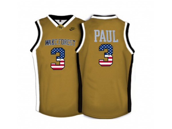 2016 US Flag Fashion Wake Forest Demon Deacons Chris Paul #3 College Basketball Throwback Jersey - Gold