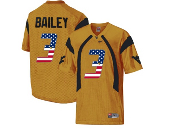2016 US Flag Fashion West Virginia Mountaineers Stedman Bailey #3 College Football Mesh Jersey - Gold