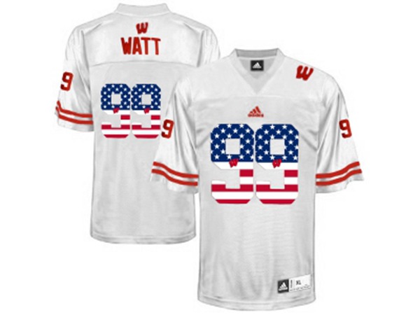 - 2016 US Flag Fashion-Mens Wisconsin Badgers J.J Watt #99 College Football Jersey - White