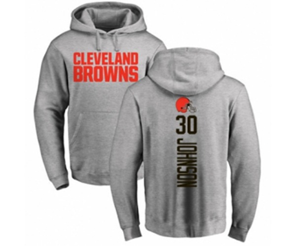 Cleveland Browns #30 DErnest Johnson Ash Backer Pullover Hoodie