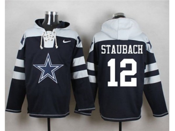 Dallas Cowboys #12 Roger Staubach Navy Blue Player Pullover Hoodie