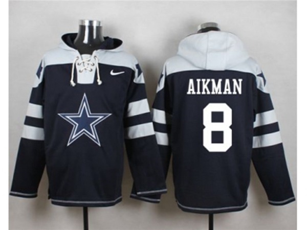Dallas Cowboys #8 Troy Aikman Navy Blue Player Pullover Hoodie