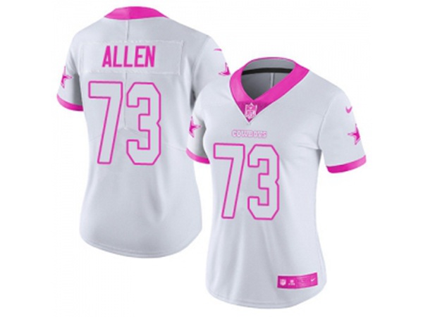 Women Dallas Cowboys #73 Larry Allen White Pink Stitched NFL Limited Rush