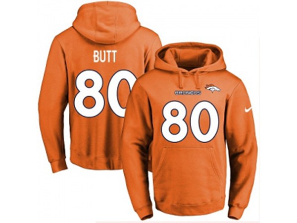 Denver Broncos #80 Jake Butt Orange Name & Number Pullover NFL Hoodie