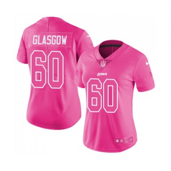 Women Detroit Lions #60 Graham Glasgow Limited Pink Rush Fashion Football Jersey