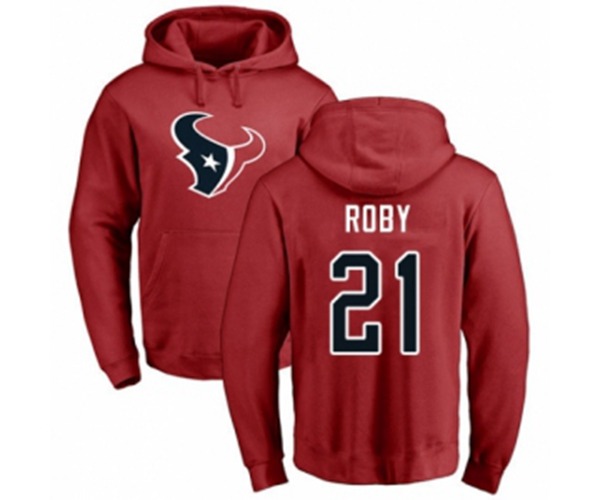 Houston Texans #21 Bradley Roby Red Name & Number Logo Pullover Hoodie