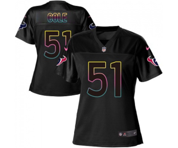 Women Houston Texans #51 Dylan Cole Game Black Fashion Football Jersey