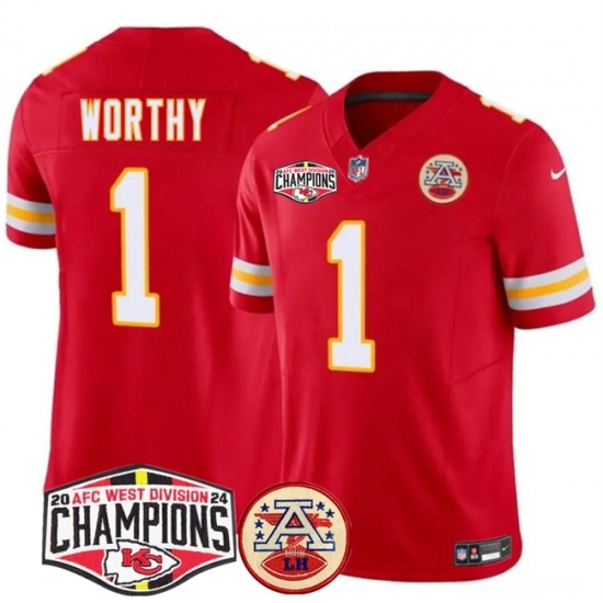 Kansas City Chiefs #1 Xavier Worthy Red F.U.S.E. 2024 AFC West Division Champions Vapor Limited Stitched Football Jersey