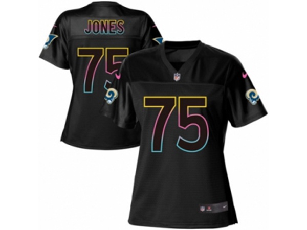 Women Los Angeles Rams #75 Deacon Jones Game Black Fashion NFL Jersey