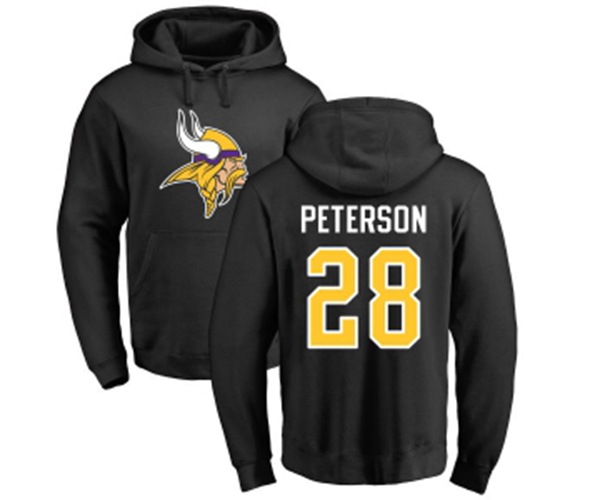 Minnesota Vikings #28 Adrian Peterson Black Name & Number Logo Pullover Hoodie