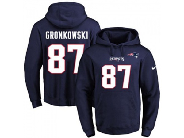 New England Patriots #87 Rob Gronkowski Navy Blue Name & Number Pullover NFL Hoodie