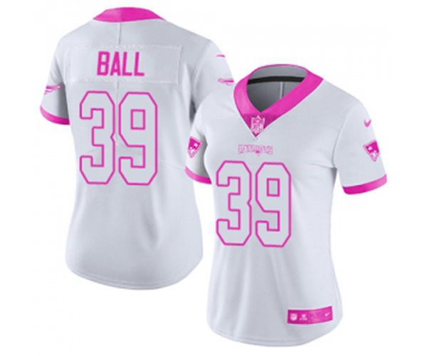 Women New England Patriots #39 Montee Ball Limited White Pink Rush Fashion Football Jersey