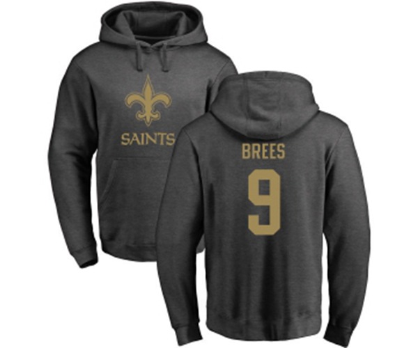 New Orleans Saints #9 Drew Brees Ash One Color Pullover Hoodie