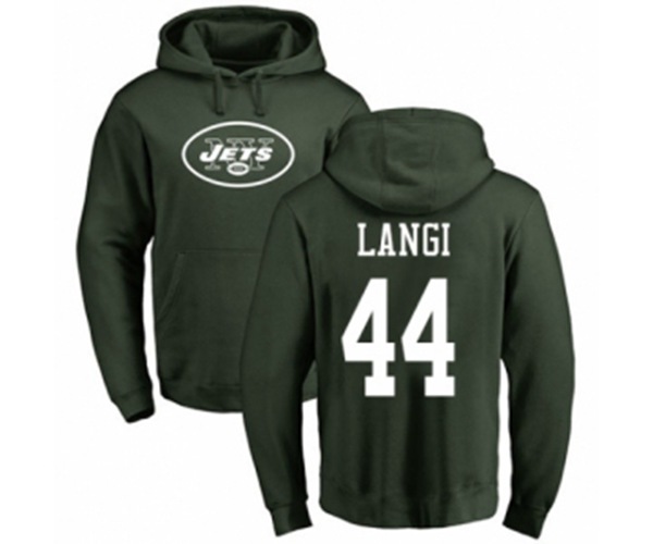 New York Jets #44 Harvey Langi Green Name & Number Logo Pullover Hoodie