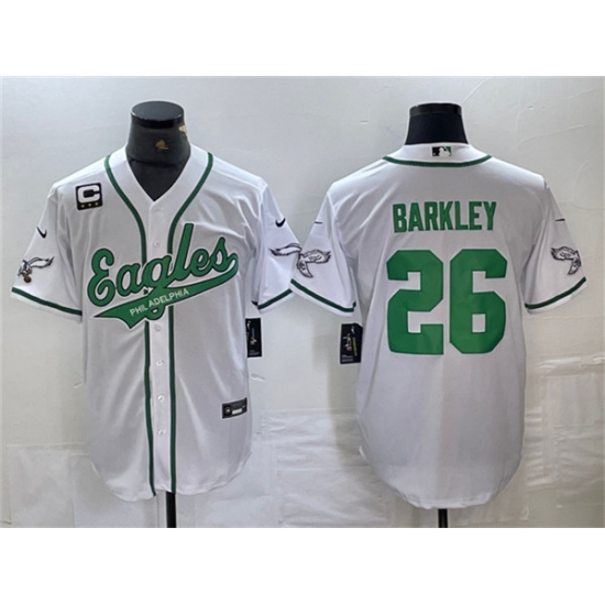 Philadelphia Eagles #26 Saquon Barkley White With 3-star C Cool Base Baseball Stitched Jerseys