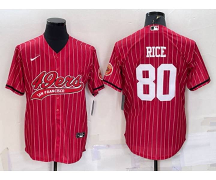 San Francisco 49ers #80 Jerry Rice Red Pinstripe With Patch Cool Base Stitched Baseball Jersey
