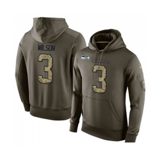 Seattle Seahawks #3 Russell Wilson Green Salute To Service Pullover Hoodie