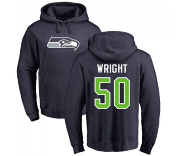 Seattle Seahawks #50 K.J. Wright Navy Blue Name & Number Logo Pullover Hoodie