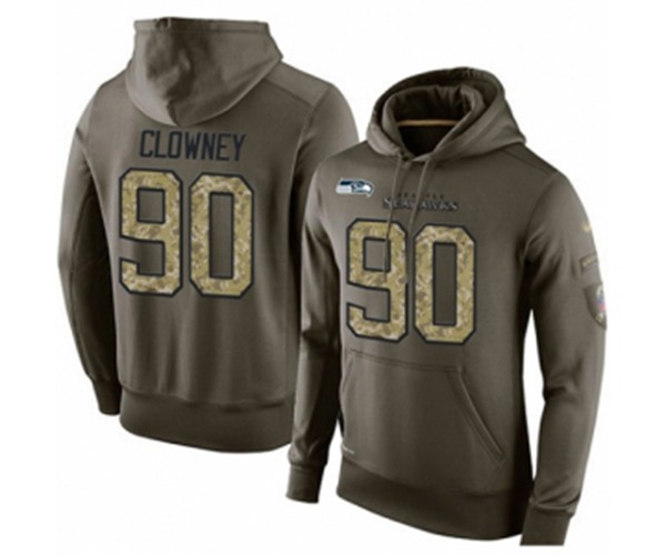 Seattle Seahawks #90 Jadeveon Clowney Green Salute To Service Pullover Hoodie