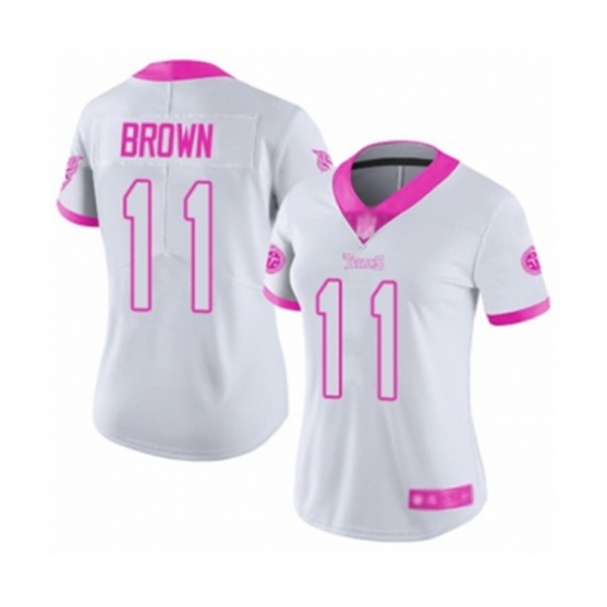 Women Tennessee Titans #11 A.J. Brown Limited White Pink Rush Fashion Football Jersey