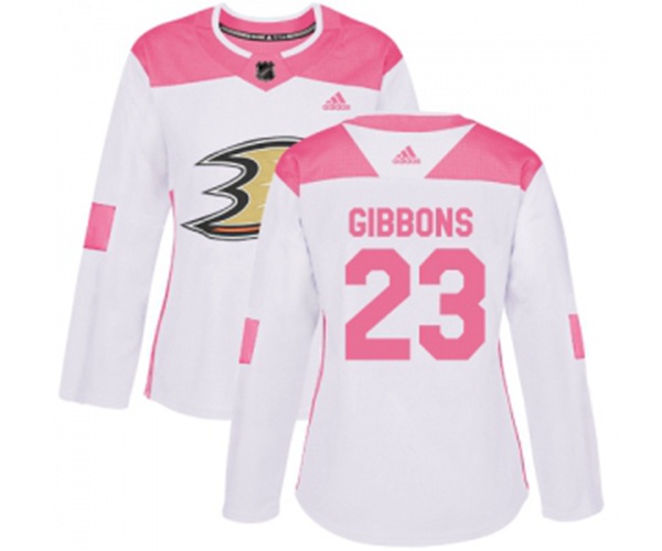Women Anaheim Ducks #23 Brian Gibbons Authentic White Pink Fashion Hockey Jersey