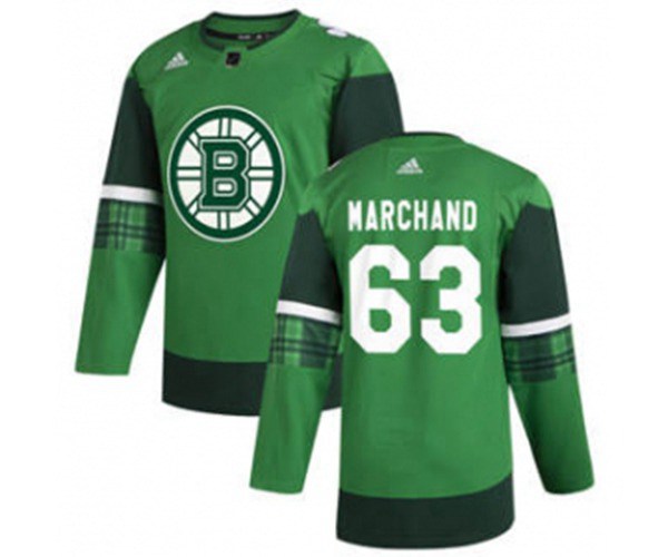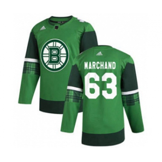 Boston Bruins #63 Brad Marchand 2020 St. Patricks Day Stitched Hockey Jersey Green