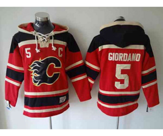 - Calgary Flames #5 Mark Giordano Red Pullover NHL Hoodie