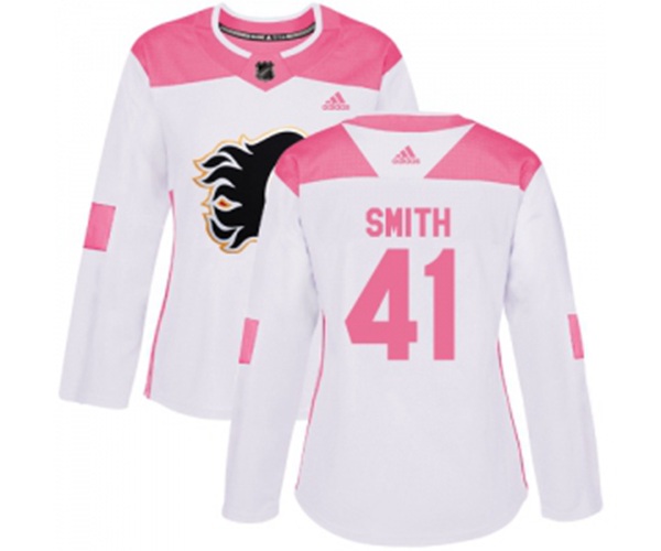 Women Calgary Flames #41 Mike Smith Authentic White Pink Fashion Hockey Jersey