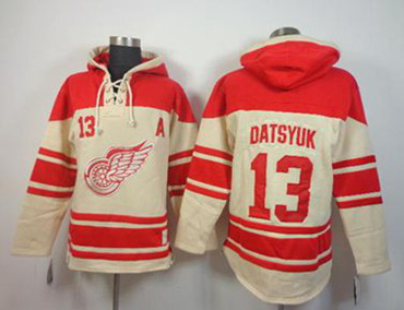 Detroit Red Wings #13 Pavel Datsyuk Red-Cream Pullover Hooded