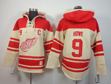 - Detroit Red Wings #9 Gordie Howe Red-Cream Pullover Hooded