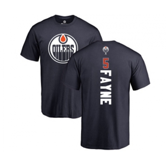 - Edmonton Oilers #5 Mark Fayne Navy Blue Backer T-Shirt