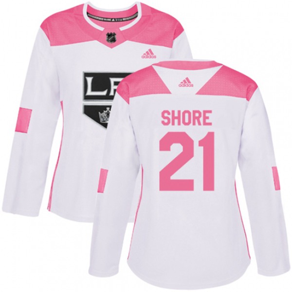 Womens Los Angeles Kings #21 Nick Shore Authentic White Pink Fashion NHL Jersey