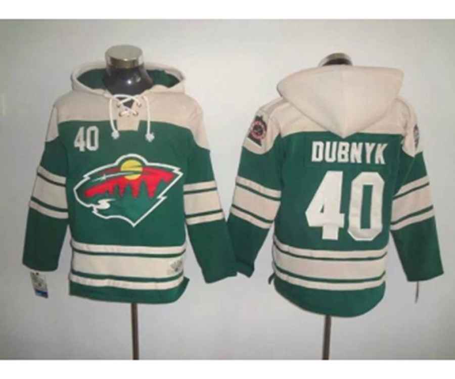- Minnesota wilds #40 Devan Dubnyk Cream-Green Pullover Hooded