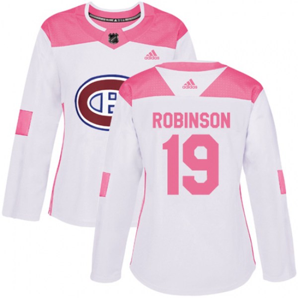 Women Montreal Canadiens #19 Larry Robinson Authentic White Pink Fashion NHL Jersey