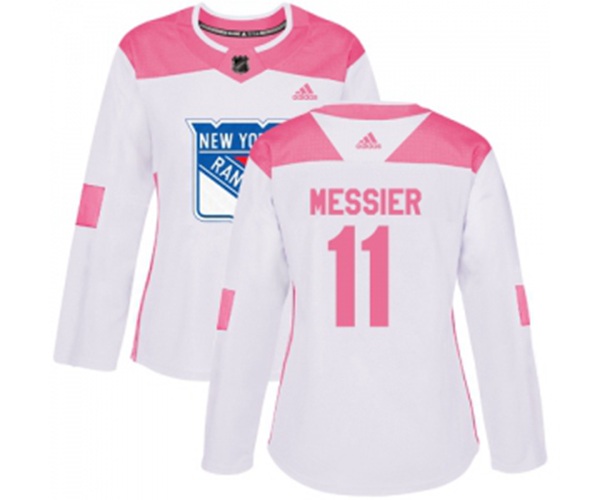 Women Adidas New York Rangers #11 Mark Messier Authentic White Pink Fashion NHL Jersey