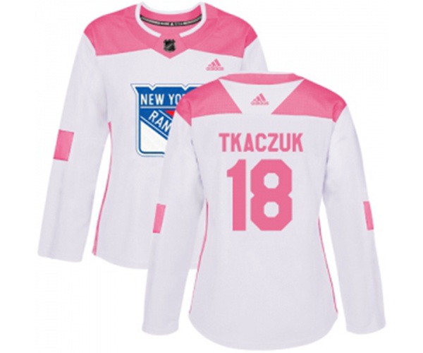 Women Adidas New York Rangers #18 Walt Tkaczuk Authentic White Pink Fashion NHL Jersey