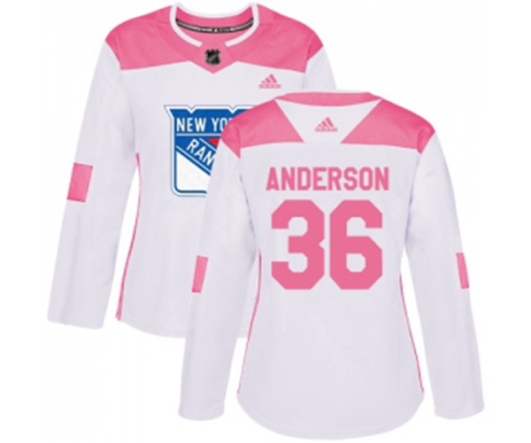 - Women Adidas New York Rangers #36 Glenn Anderson Authentic White Pink Fashion NHL Jersey